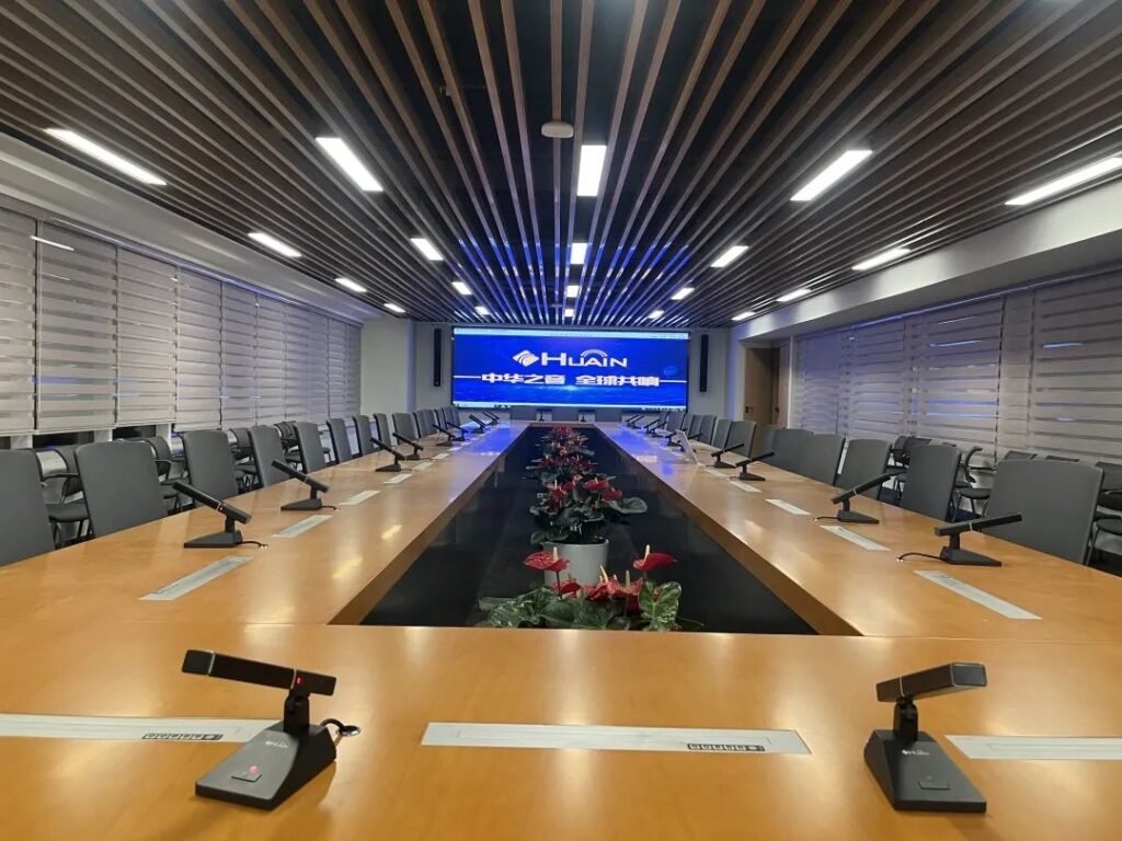 HUAIN đã tùy chỉnh dòng hệ thống hội nghị màng kép kỹ thuật số HY-6210 cho phòng hội thảo của trường, với loa trần và